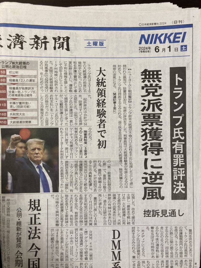 2024年6月1日(土)に日本経済新聞を紙面版で買った。